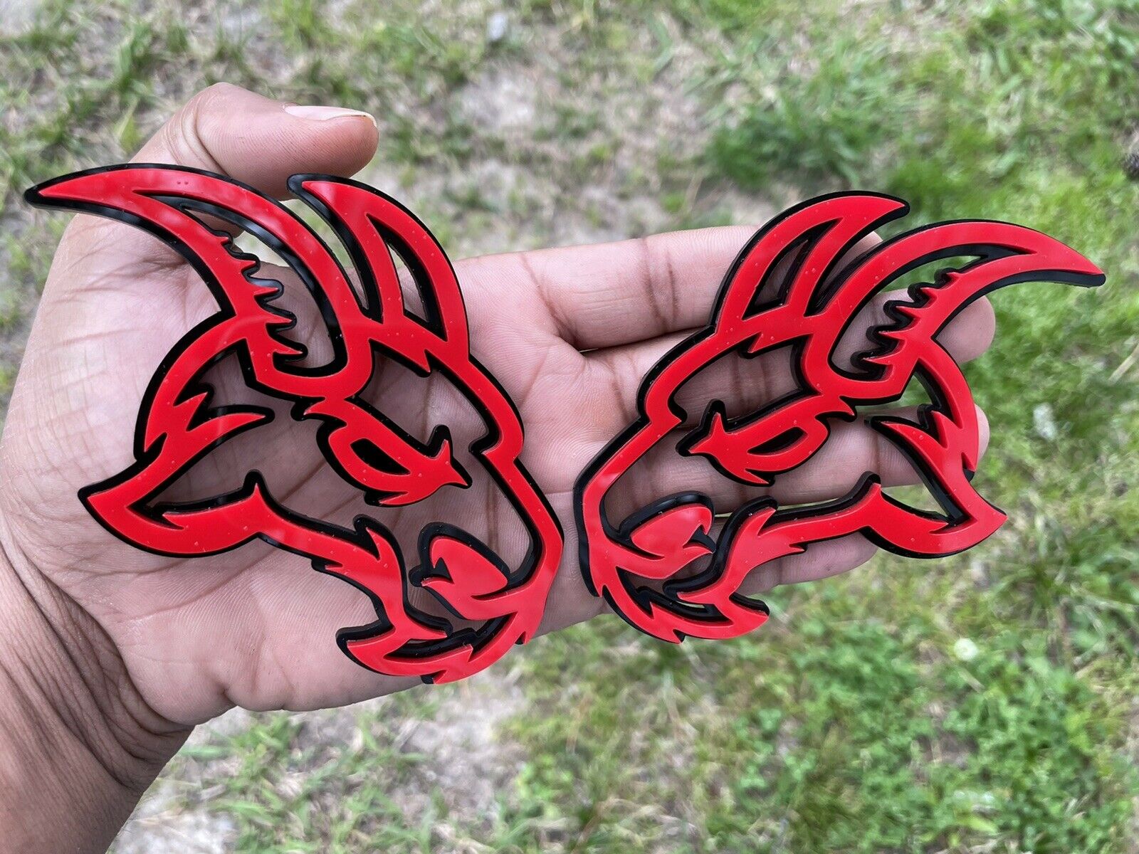 Brand New Custom Angry GOAT emblem badge. Made of high-quality automotive plastic material that will last the life of your vehicle. Has top quality strong bond double sided tape on back, made for all weather conditions. Different colors available.