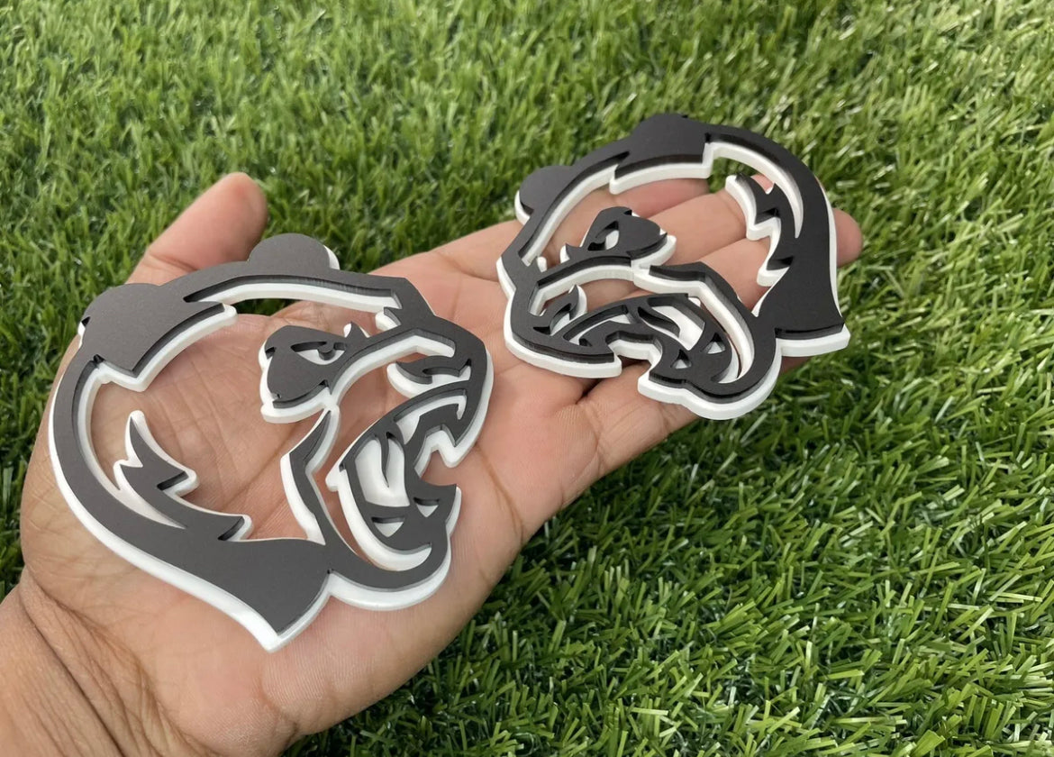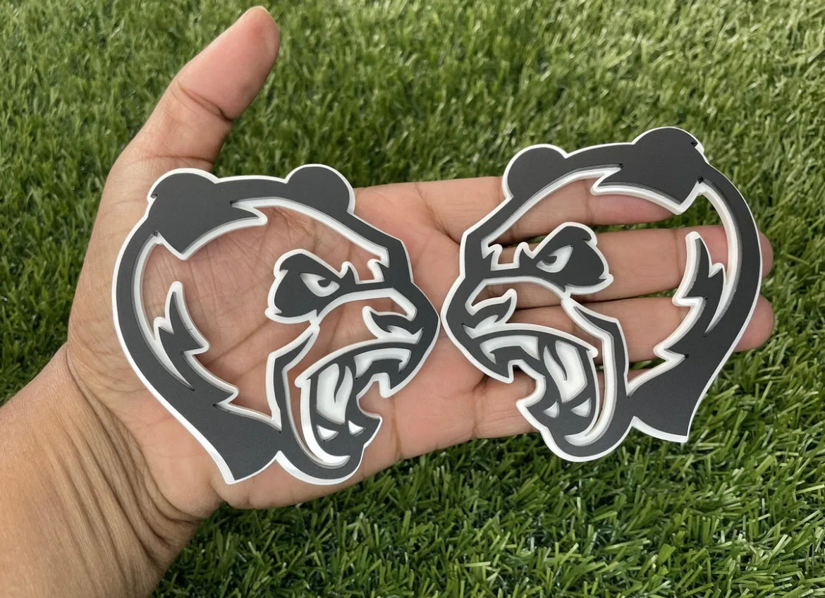 Angry Panda Emblem Badges Matte Black On White Car Or Truck Costume New. Sold as a set of two badges, As pictured. Brand New Custom Angry Panda emblem badge. Made of high quality automotive plastic material that will last the life of your vehicle. Has top quality strong bond double sided tape on back, made for all weather conditions. Different colors available. Sold as a set of two pieces. As pictured in photo both left and right side included. Size: 3.3” inches wide by 3.4” inches tall Fast Shipping!! |