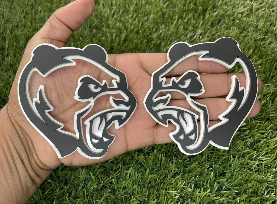 Angry Panda Emblem Badges Matte Black On White Car Or Truck Costume New.