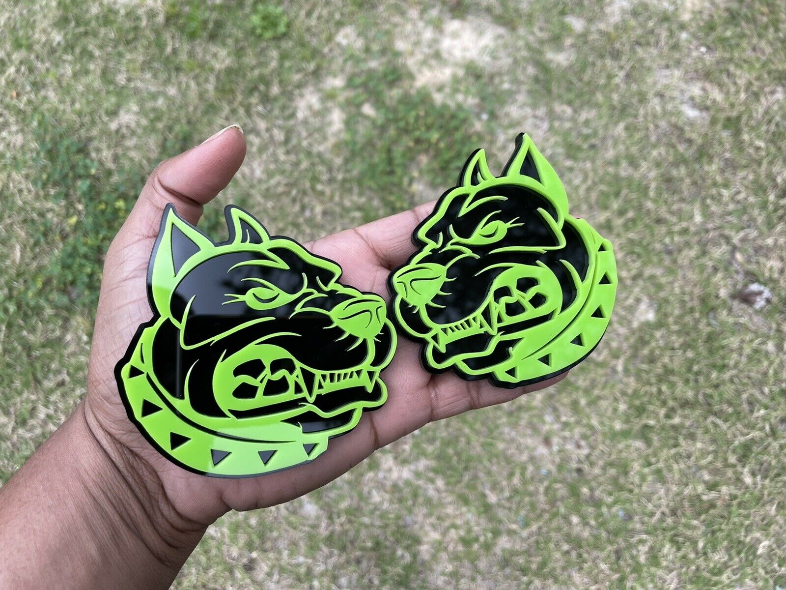 Angry Pitbull Car Truck Emblem Badge Lime Green On Black New