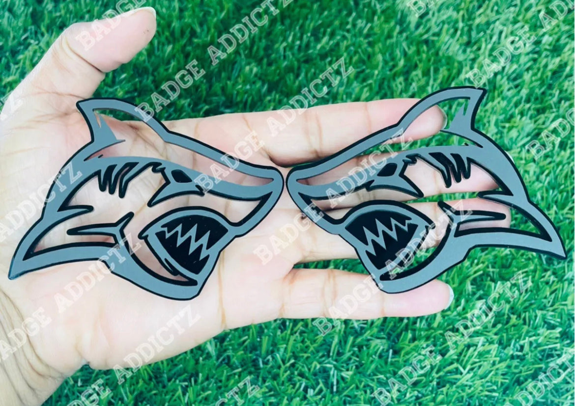 Angry Shark Emblem Badges Matte Black On Glossy Black Custom New Aggressive Set