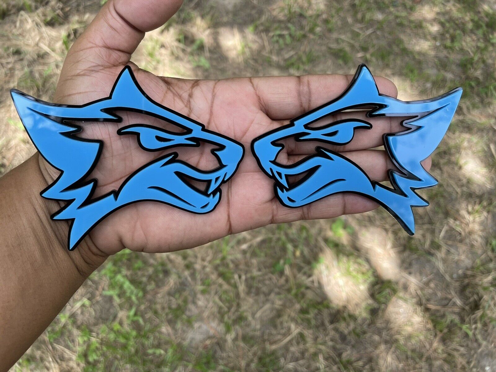 Evil FOX Car Emblem Badge Blue On Black Custom New. Sold as a set= two emblem’s as pictured. Brand New Custom Evil FOX emblem badge. Made of high quality automotive plastic material that will last the life of your vehicle. Has top quality strong bond double sided tape on back, made for all weather conditions. Different colors available. Sold as a set of two pieces. As pictured in photo both left and right side included. Size 3.7” inches wide by 3.2” inches tall |