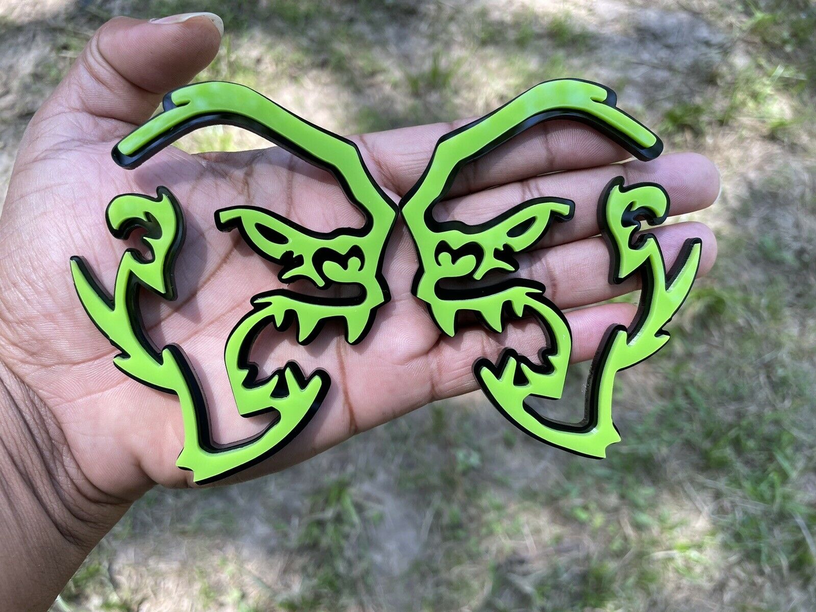 Brand New Custom Gorilla emblem badge set Lime Green on Black. Made of high-quality automotive plastic material that will last the life of your vehicle. Has top quality strong bond double sided tape on back, made for all weather conditions. Different colors available.
