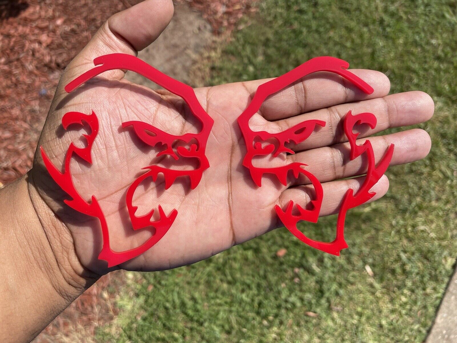 Brand New Custom Red Gorilla emblem badge. Made of high-quality automotive plastic material that will last the life of your vehicle. Has top quality strong bond double sided tape on back, made for all weather conditions. Different colors available.