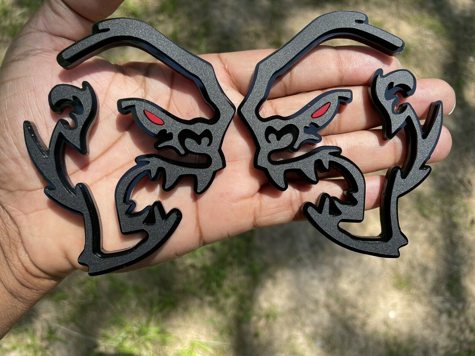 Brand New Custom Red Eye Evil Gorilla emblem badge. Made of high-quality automotive plastic material that will last the life of your vehicle. Has top quality strong bond double sided tape on back, made for all weather conditions. Different colors available.