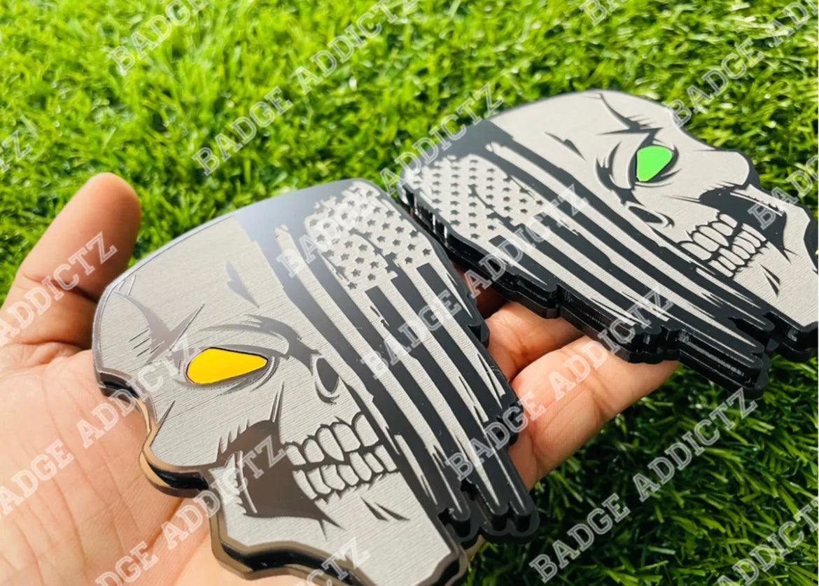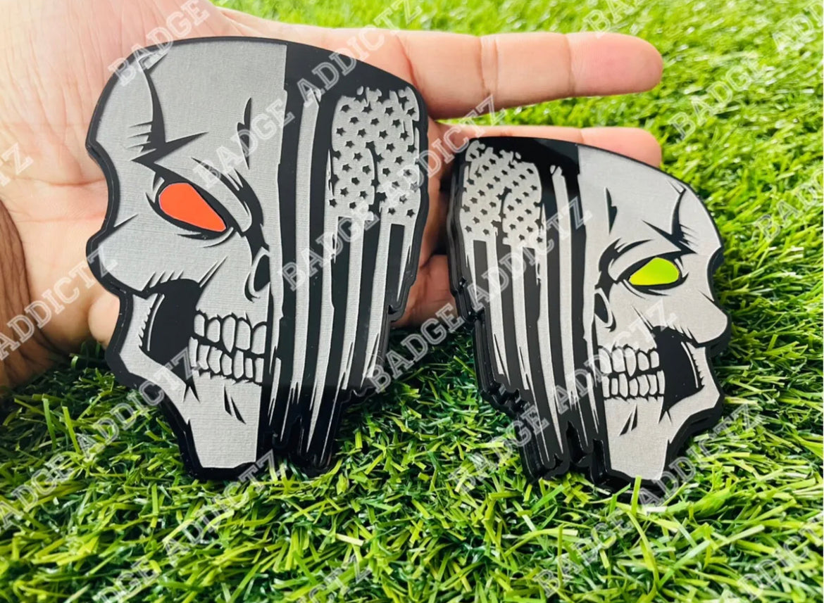 Skull Emblem Badges Flag Color Changing Eyes Aggressive Badge Addictz New.