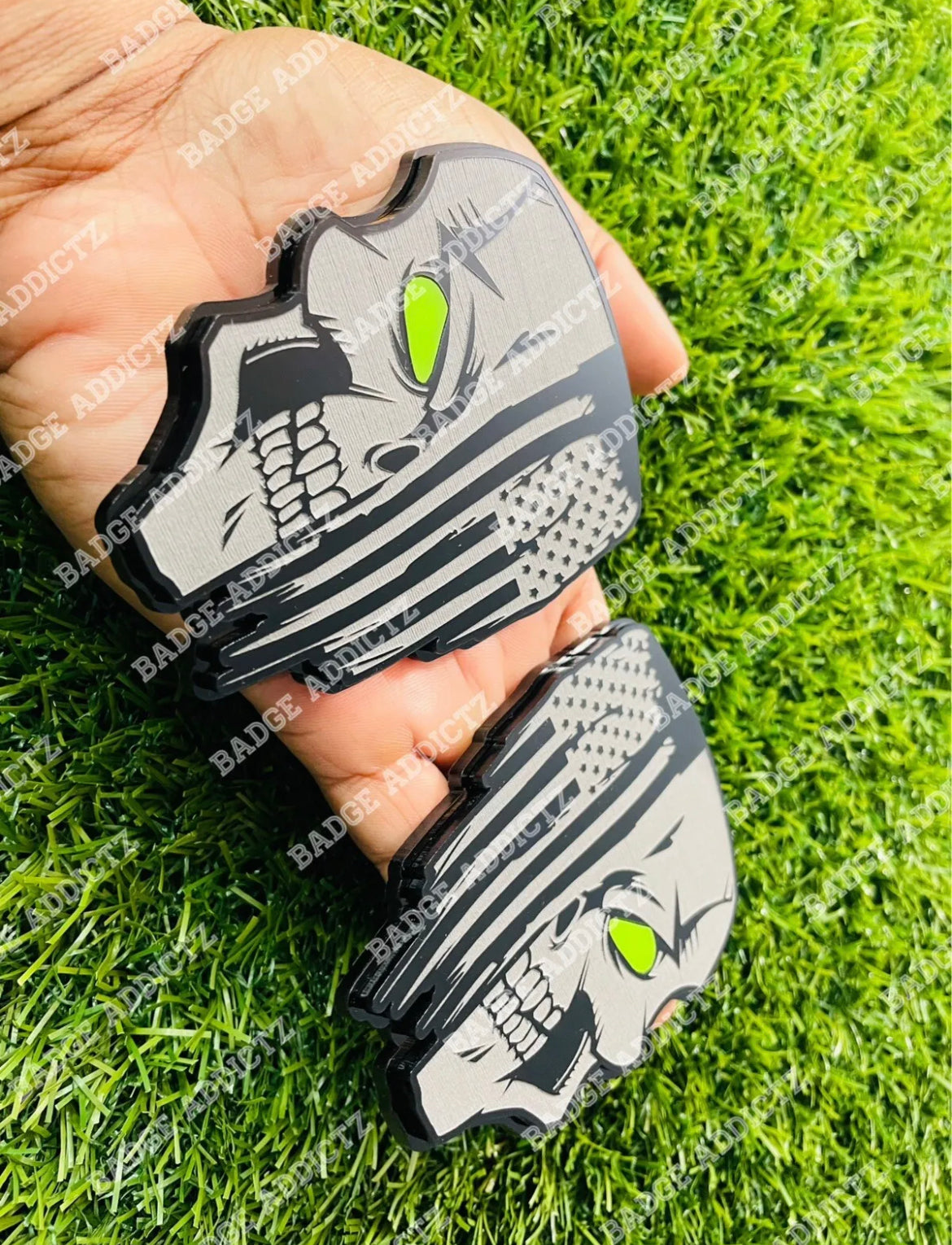 Skull Flag Emblem Badges With Lime Green Eyes Set Of 2 New Badge Addictz