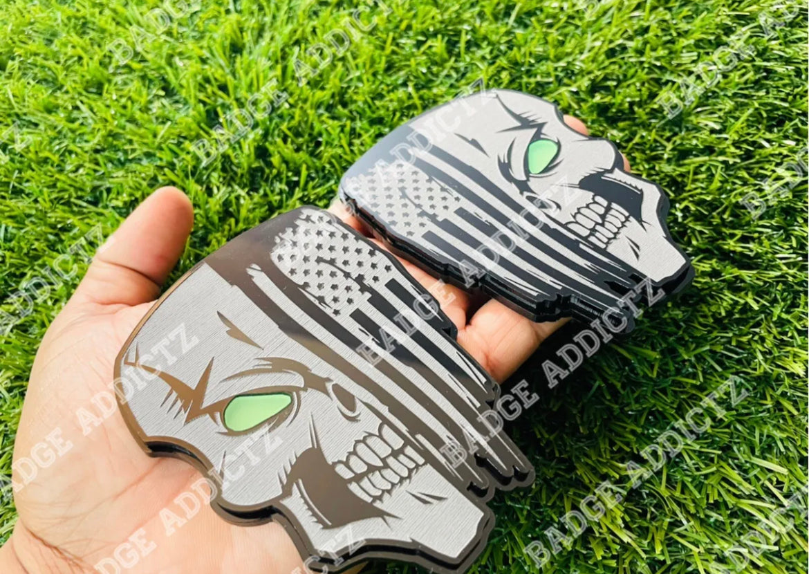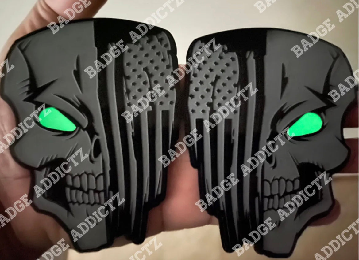 Skull Flag Emblems Badges Glowing Eyes Set Of 2 Badge Addictz Custom New.